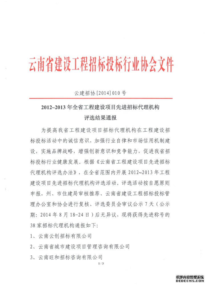 云南美狮会招标咨询有限公司连续三年获得云南省建设工程招标投标行业协会评选的“云南省工程建设项目先进招标代理”。