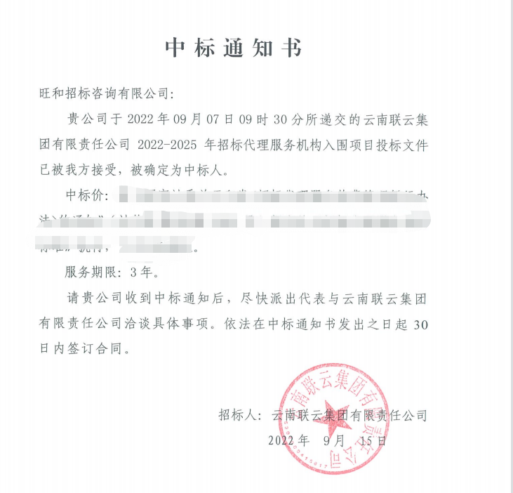 美狮会招标咨询有限公司入围云南联云集团有限责任公司 2022-2025年招标代理服务机构项目